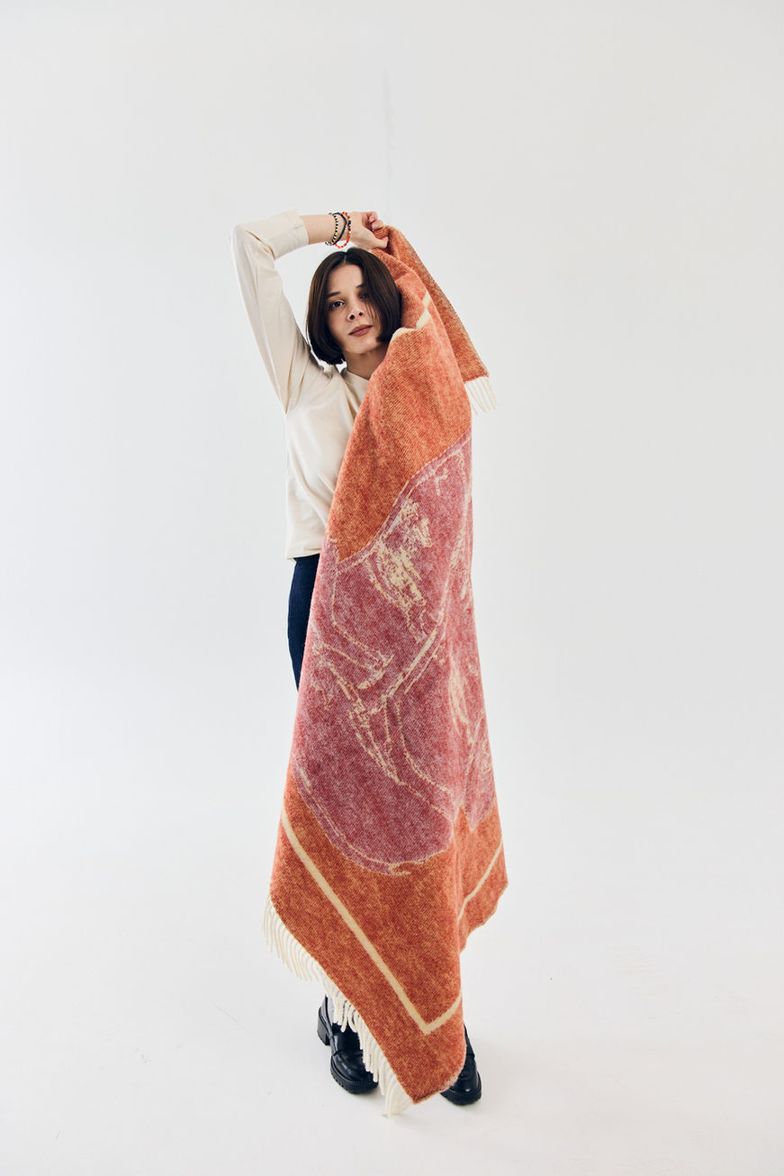 Crafted from 100% New Zealand wool and made in Europe, this plaid showcases the bold Kaman artwork Salt & Poirot. The frizzled edges add a subtle, playful touch.